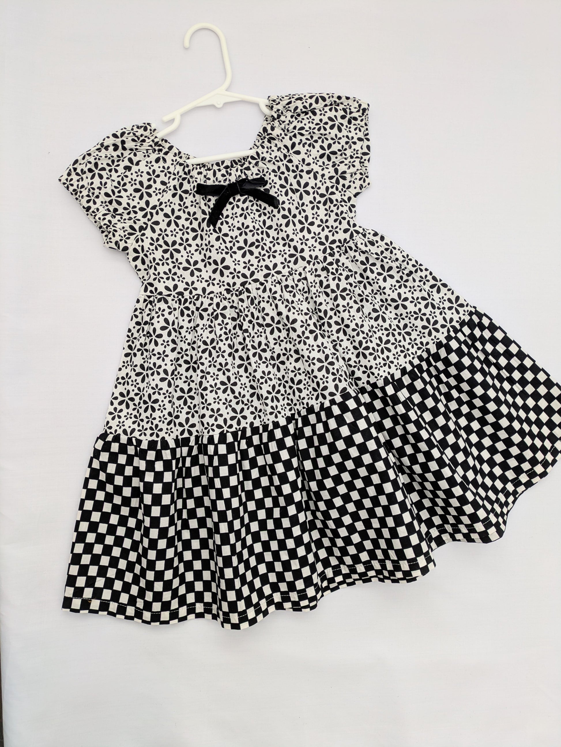 The tiered silhouette adds volume and movement, making it perfect for sunny days, family outings, or festive gatherings. Light, breathable, and full of character—this dress is a warm-weather favourite.